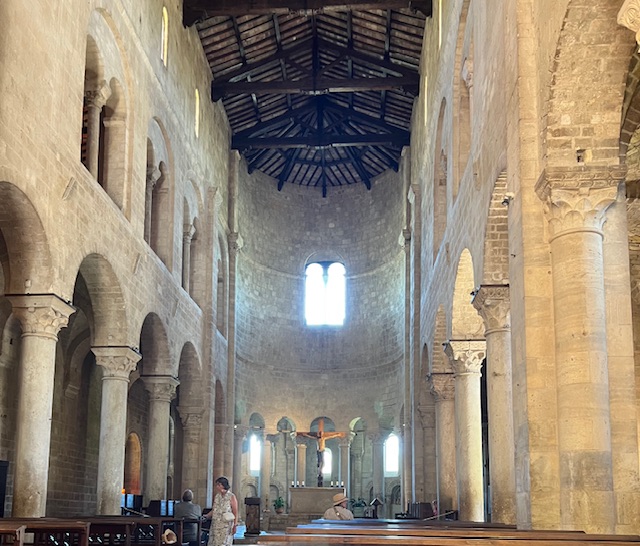The interior matches the beauty of the exterior, benefitting from scrupulous restoration of so much of its medieval legacy. The building incorporates roman material from a nearby villa, stonework from the ninth, tenth and eleven centuries, and early medieval wooden sculpture of great quality