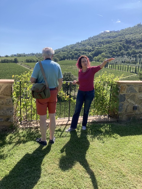 We had met Angela of Istine at the consorzio party, and arranged to visit before our next journey to Montalcino. Her colleague greeted us and showed us round the vineyard (before the flies got any worse!) and supplied background to this newish project, before Angela joined us for the tasting. She is producing not one but three UGAs and one Riserva and invests huge energy to drive this forward; very clear in her aim and how to achieve it. Impressive!