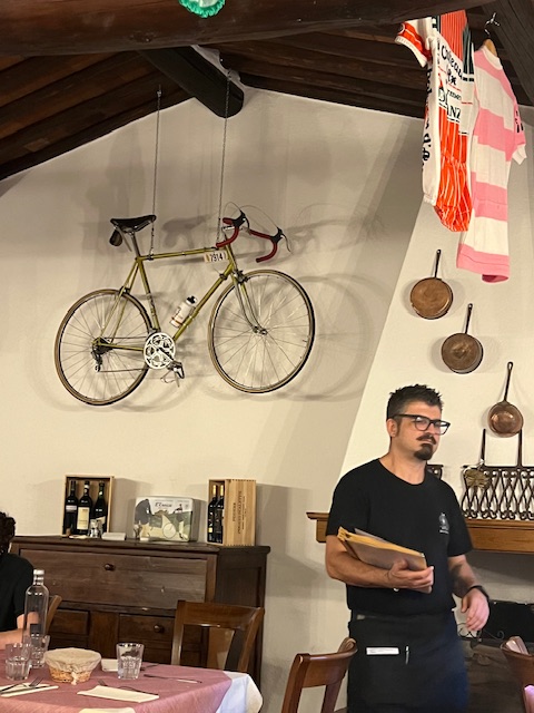 After unpacking, we took advice on eateries and chose the cyclists’ destination close by the Vespa hire shop : Bettola dell’Eroico which was at least open and well away from the hoi-poloi and bustle of the Festa. But the single most important moment in the late afternoon was finding an open Enoteca nearby, having searched everywhere.
