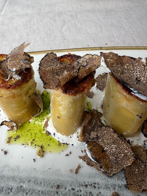 We returned to Montalcino, and ate in the Hotel Il Giglio where many years ago we’d attended a wine tasting with Gabriele Gorelli and his friendly tasting group, practising for the MW exam. Here we met Michele and his father once again; and heard news of the Sicily project in which Michele, Gabriele, and Pietro Rosso are involved.