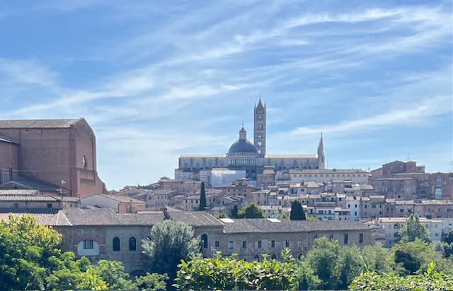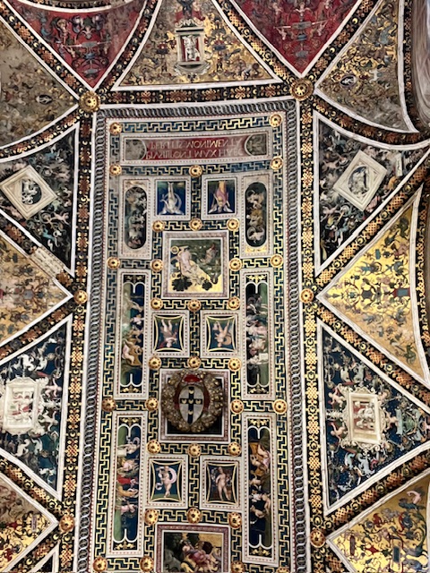It is an extraordinary building. Its sheer size beggars belief; its decoration – floors, ceilings, walls, inside and out, is overwhelming. Built at the beginning of the 1300s, Siena was enjoying international attention – a hub for pilgrims, popes, emperors, bankers and myriad traders in silk, gold, spices, and of craftsmen, sculptors and artists, travelling from East to West, from Northern Europe to Rome, and back….