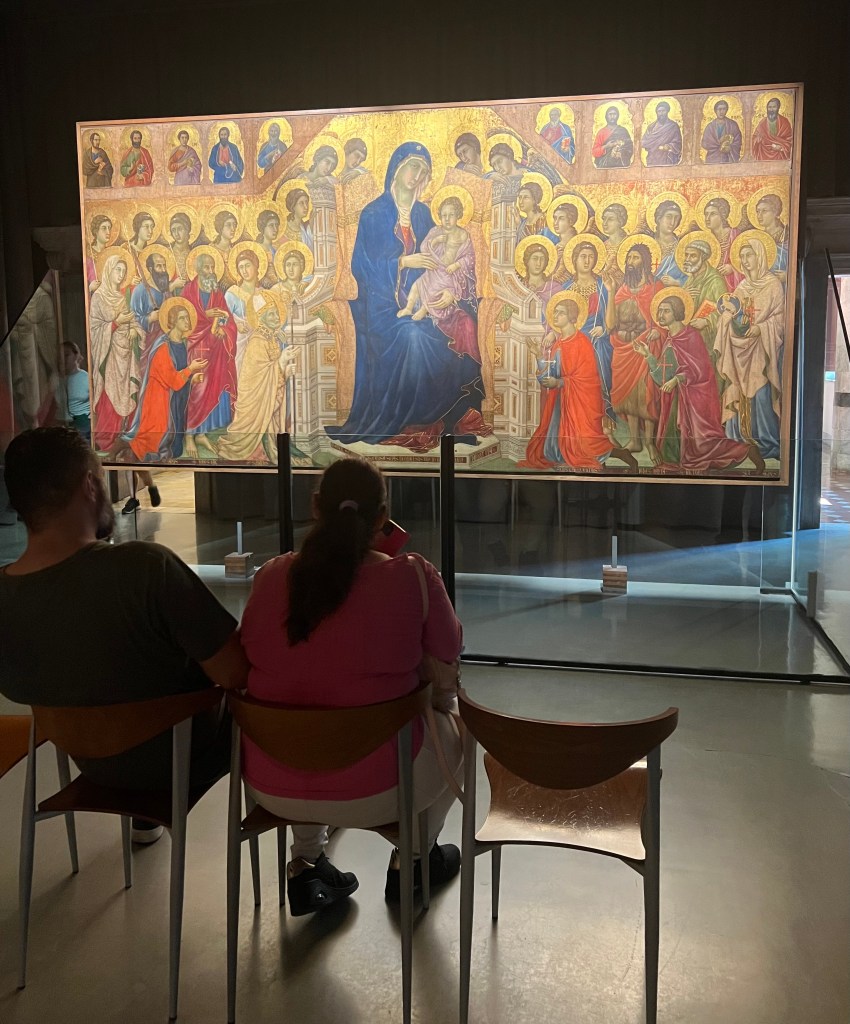 On display alongside the Maestà in Siena is another of Duccio’s earlier exquisite pieces, known as the Madonna of Crevole, painted in 1284.