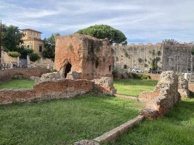 It was another warm day, and I enjoyed a large beer on a quiet street only two hundred metres from the milling crowds, with the wonky tower in full view, walking past the brick Roman gate out of the old city.