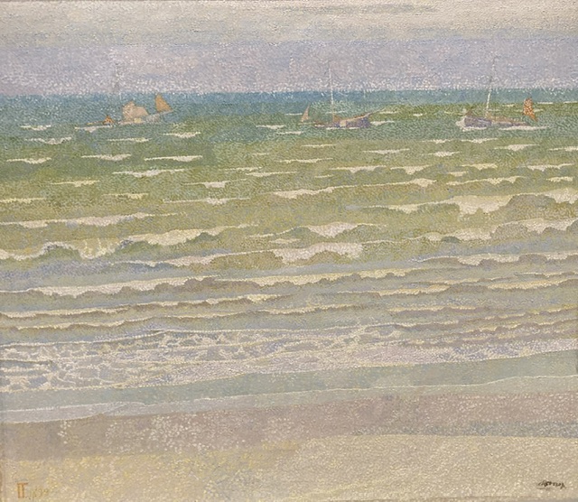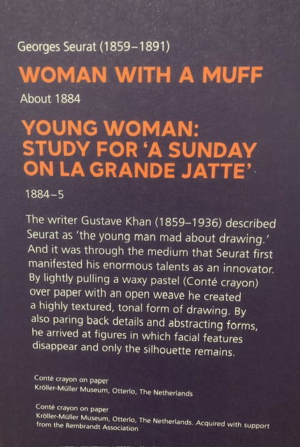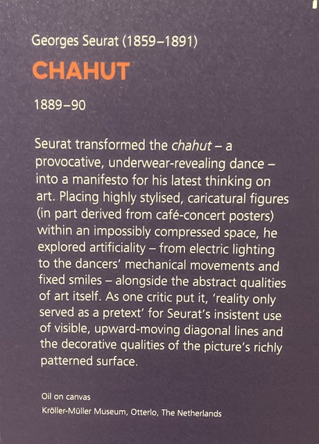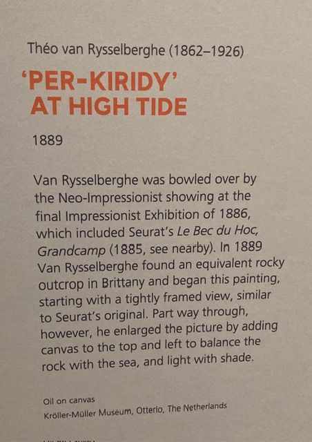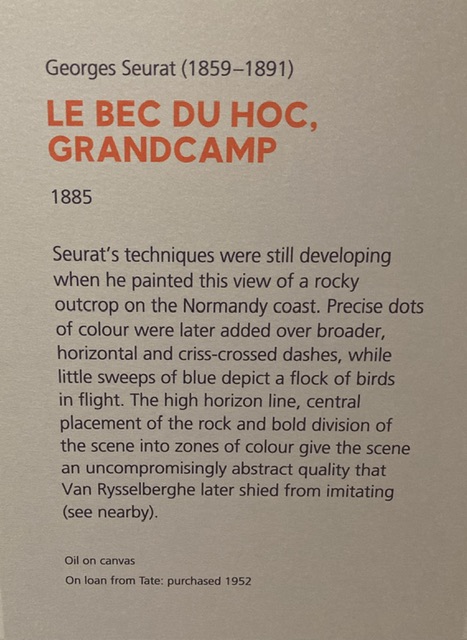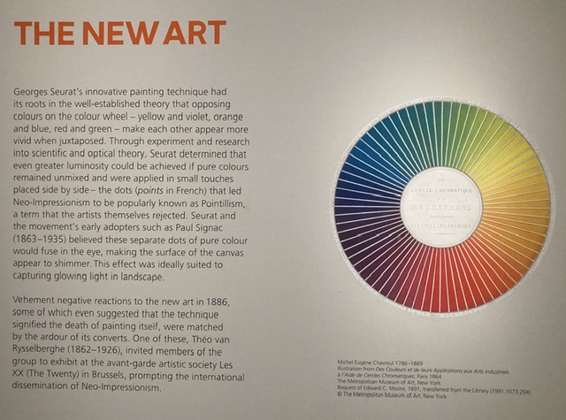 As the blurb on the NG website tells us, ‘the Neo-Impressionists painted in small dots of pure colour. Viewed from a distance, the colours blend to create nuanced tones and an illusion of light. Now known as pointillism, this technique simplified form and played with colour in an entirely new way, verging on the edge of abstraction.