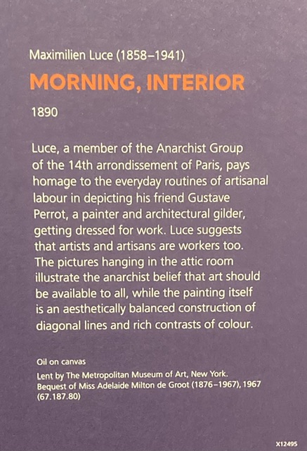 The two paintings by Maximilien Luce (1858 – 1941) were breathtaking. The sheer physicality of The Iron Foundry (1899) was show-stopping, as was his brilliant and moving Morning (1890)