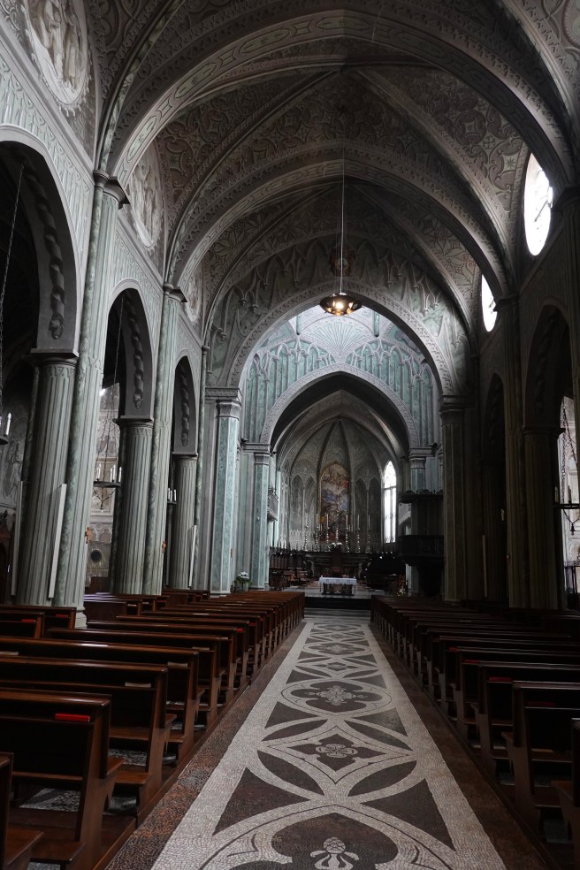 We had time on our hands before our final tasting this afternoon, and we decided to spend the morning in Biella, a town with a long-standing textiles trade. Parking, of course, was a challenge, but we squeezed into a very small gap on the via Giovanni Boglietti and set off for the piazza Duomo, where we had a civilised cup of coffee in the Matteo Caffé alongside its posh Cucina.
