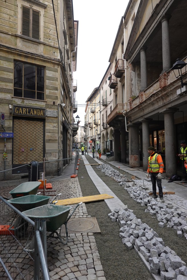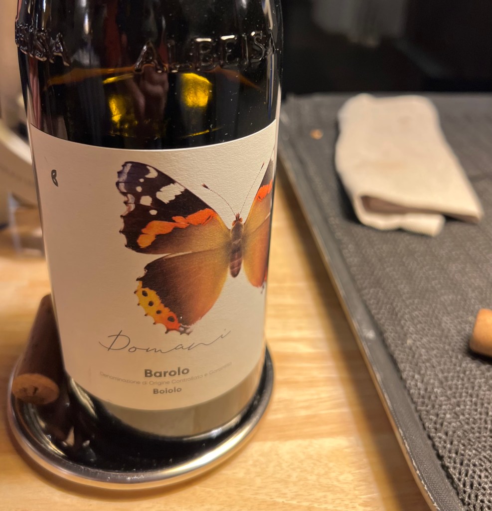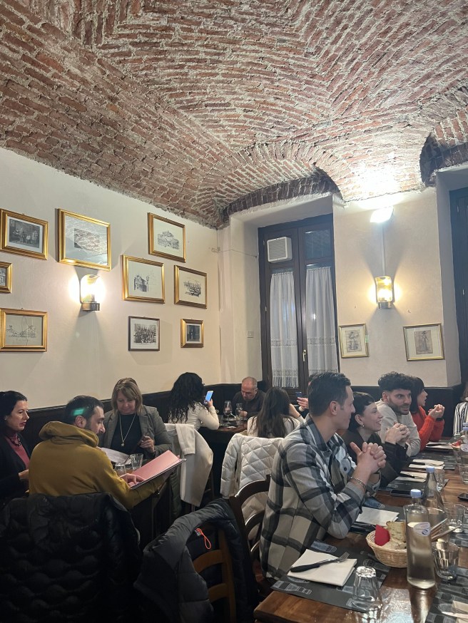 We spent a happy half hour trying to locate a local ristorante both on Google maps and in reality. We ended up in a very robust, busy and economical place just round the corner, 4 Soldi eating large plates of tempura carcioffi and drinking Monchiero’s 2023 Langhe Nebbiolo. As we were finishing a large party annexed the room; we were politely re-located for our coffee. All very Italian.