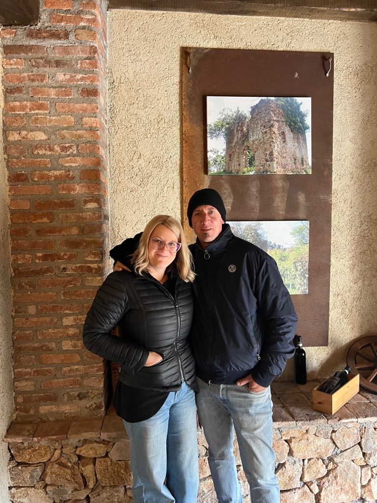 In the afternoon, we drove to the other side of the Bramaterra doc, to Psigula, named after the hill on which the vineyards sit, immediately above the house they have created around a medieval tower, and their newly built winery and tasting room. Claudia has a professional background in Chemistry, though now with three young daughters she works part time locally in a school.
