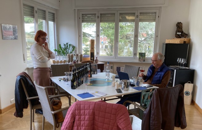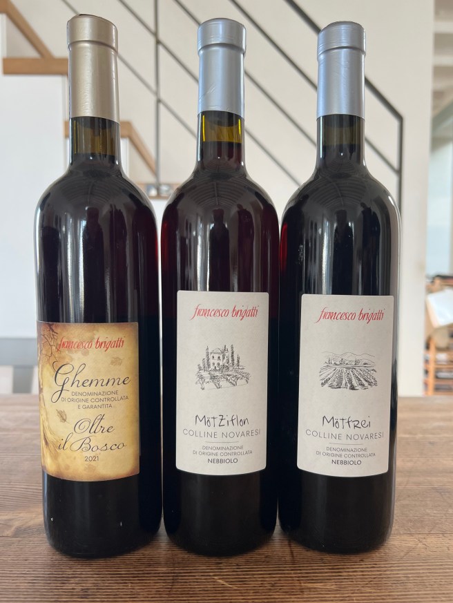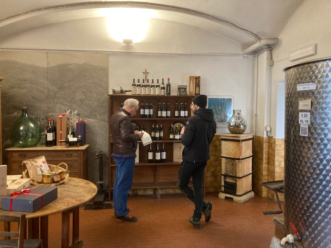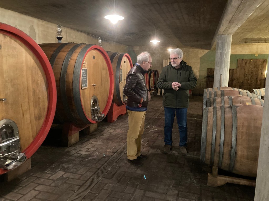 Fortunately we had a late start, and after packing up, greeting and paying Simona in her hair salon downstairs, we skipped breakfast and downed a quick cup of coffee at the Firenze before unwrapping the car (windscreen cover to prevent ice was proving useful again) and driving the 30 minutes to Suno, beyond Boca, to Francesco Brigatti whose winery we had visited in 2022.