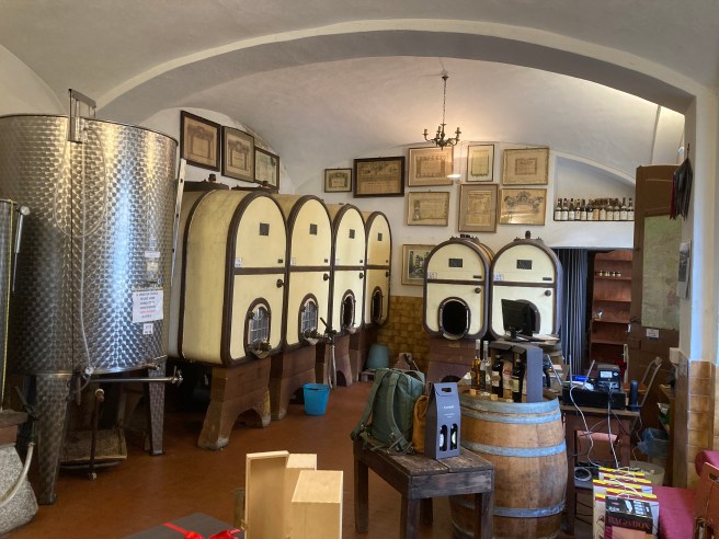 Giuglielmo showed us around the winery which has grown slowly around the cypress tree that graces their labels for wines whose grapes are grown on their property. The house his parents bought in the 90s has also been slowly rebuilt as the father changed his occupation from ‘Tractorist’ to wine producer, learning his new business working for six years at Antoniolo.