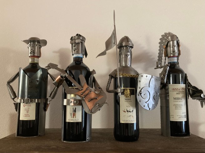 We chased down the nearby ristorante where we had eaten so well last time, only to find it closed, so we drove on to Ghemme to eat once more in the highly efficient Guffo Nero ( no shocks from mistaken texts as last year’s from Kate!) before driving a kilometre to Mirú, where Claudia once again greeted us, and treated us to an informed tasting of Marco’s father’s traditional wines.