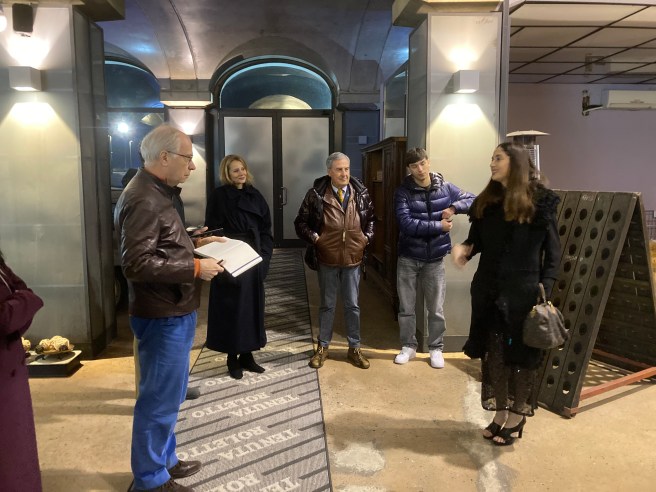 We were shown to our room in Roletto’s agriturismo, before assembling for aperitivi followed by a guided tour of the new winery, built since our last visit. Antonino’s daughter Barbara conducted a tour of the new winery before our rather strange group stumbled into the space arranged for dinner. A local chef prepared outstanding dishes, whose impact (and heat) was lost by an outbreak of long-winded explanations of the new Pinot Nero based wines. There is clearly no shortage of funds for this and Antonino’s other projects.