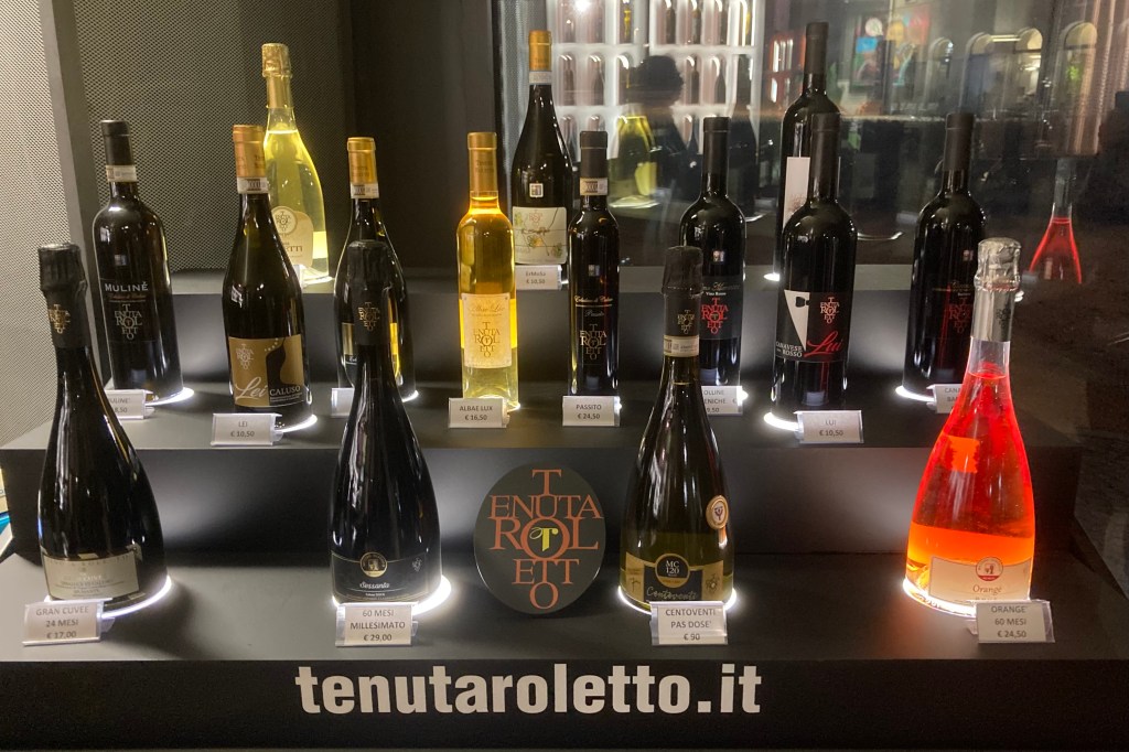 Rolleto, with whom we had stayed in May 2022, had invited us to stay again this evening, and join the special dinner to launch their two new metodo classico wines. From there we would be taken directly to Grandi Langhe tomorrow. Our plan to leave luggage at Dock Milano (tomorrow night’s hotel) was thwarted through their lack of space, so instead we prevailed on NH Centro. No one asked about our timings, and we didn’t volunteer that we would collect it in 36 hours!