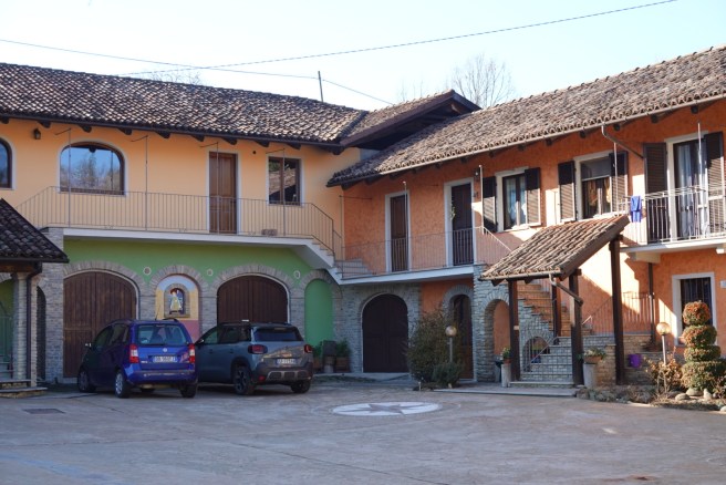 We ate a delightful Russian salad, followed by lamb and beef dishes both slow cooked, and even desserts: orange sorbet and hazelnut semifreddo, trying to mark time until our 15.00 appointment at Gaia’s new white wine winery near Trezzo Tinella. They have bought the vineyards of the Cascina Langa but not the cascina itself, which is celebrated nationally as a one time refuge for partisans.