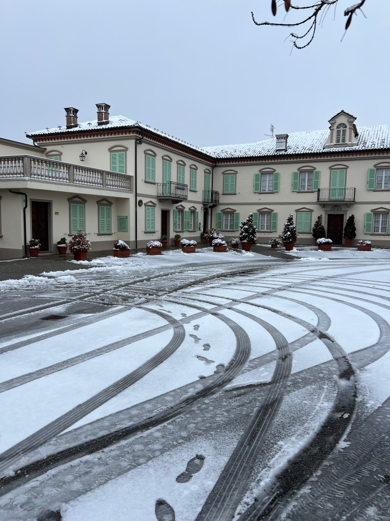 Our next appointment made only yesterday at Grandi Langhe was at Ca’ del Baio near Tre Stelle in Barbaresco. Mercifully it had stopped snowing as we drove through the Langhe, and as the day wore on, the thaw created slippery slush, though the land remained white and the roads were slippy.