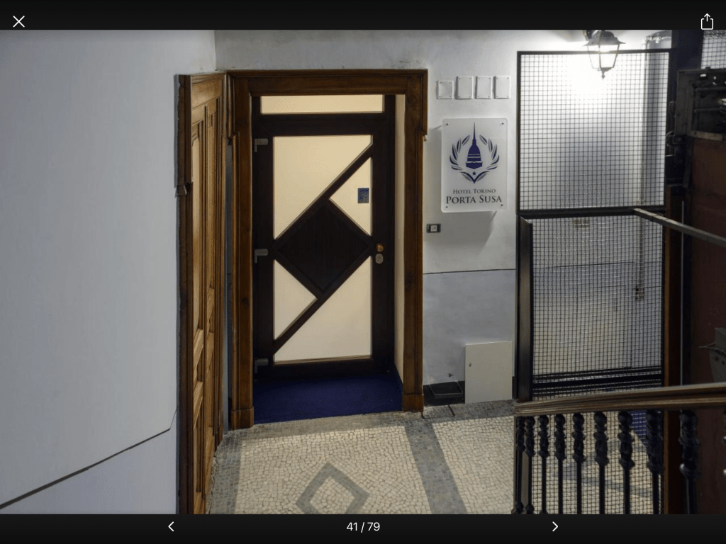 We made it to the station in time for coffee at its bar, and caught the 18.07 to Porta Susa, and the cheapest of our one night stands – the Hotel Torino. Its reception is on the second floor, (60 steps) and our room (in fact a multi room suite) on the fourth floor (another 60 steps). David heroically took the luggage in the birdcage lift, which zoomed up and down the central stairwell efficiently as it has done for probably a hundred years…