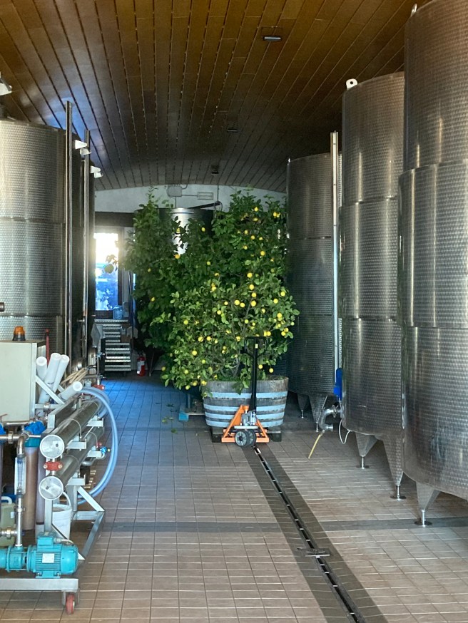 We were greeted by Federika, recently employed as additional admin person, who produced their whites for David to taste, before she left us to take part in a midday zoom. We set off in search of lunch.