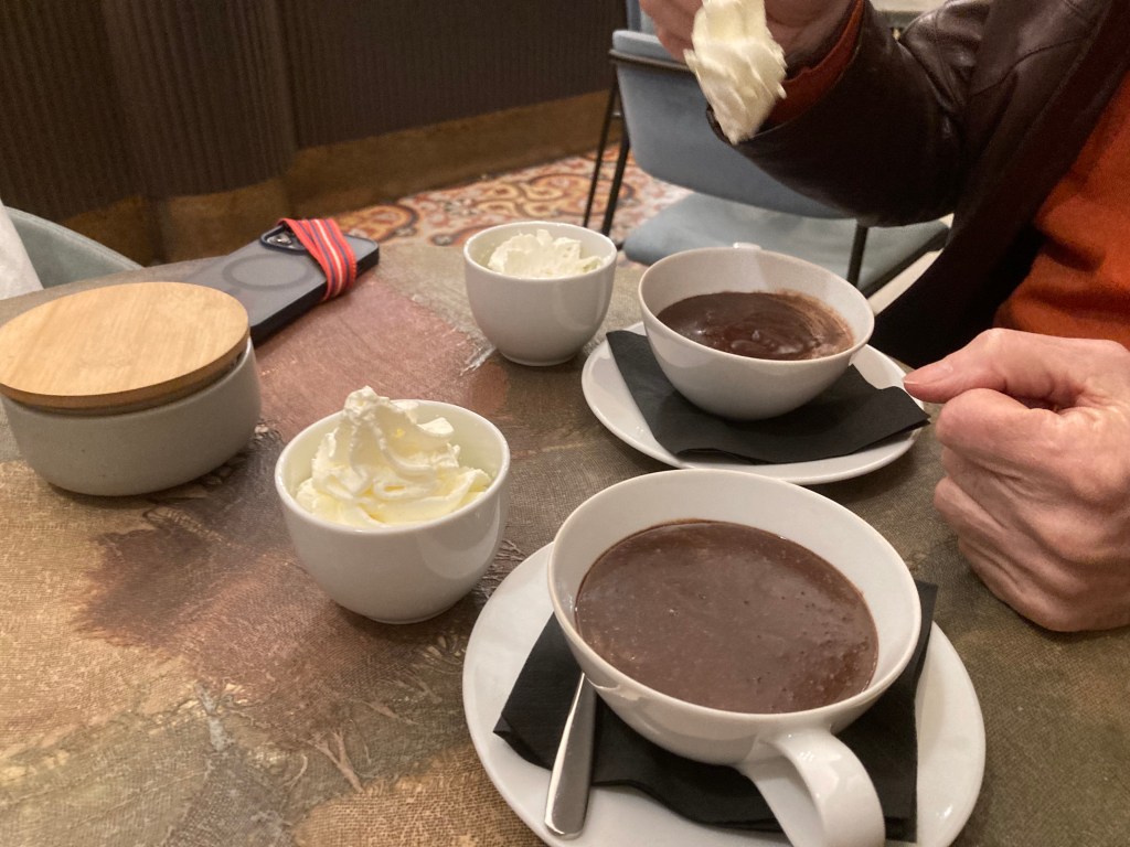 And at a bookshop called Milton nearby we found two geographical maps, one of the Langhe and the other of Asti, Alba and Aqui Terme. These triumphs were celebrated with hot chocolate and cream in the Caffe del Teatro.