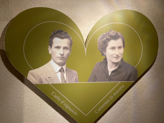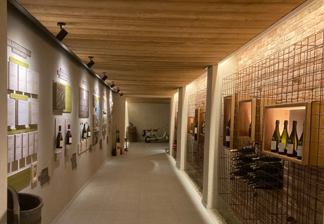 We tasted from three of the botti, each holding ‘resting’ wines to be released in 2027 or 2028. They were already delicious and fruit especially prominent. Liste is Alice’s favourite, over Cannubi. In the tasting room we learned that the wine-making is always the same for all their red wines, the only difference being how long they rest before bottling and release.